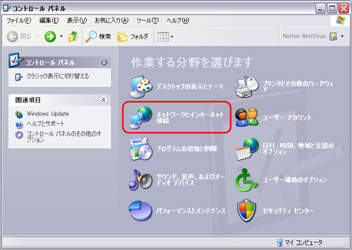 以下のウインドウが表示されますので、「ネットワークとインターネット接続」アイコンをクリックします。 手順3